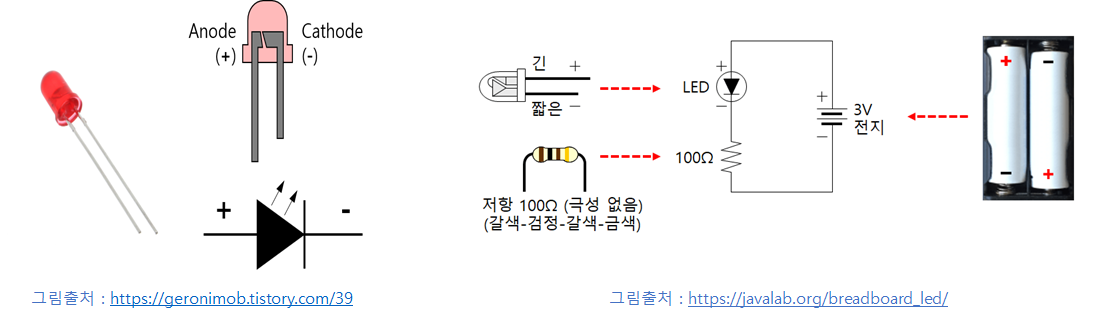 • LED(Light Emitting Diode)는 발광 다이오드라고 하며 전류를 가하면 빛을 발하는 반도체 소자이다.